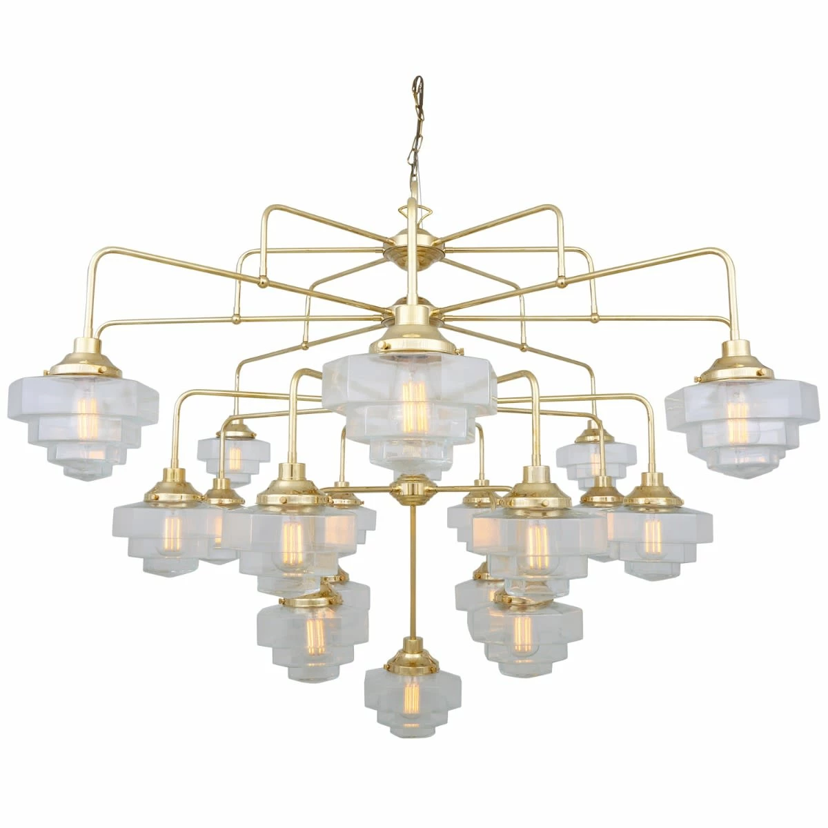 Composed of 21 Art Deco glass shades, the Siena chandelier brings an understated vintage flair to interior spaces.
