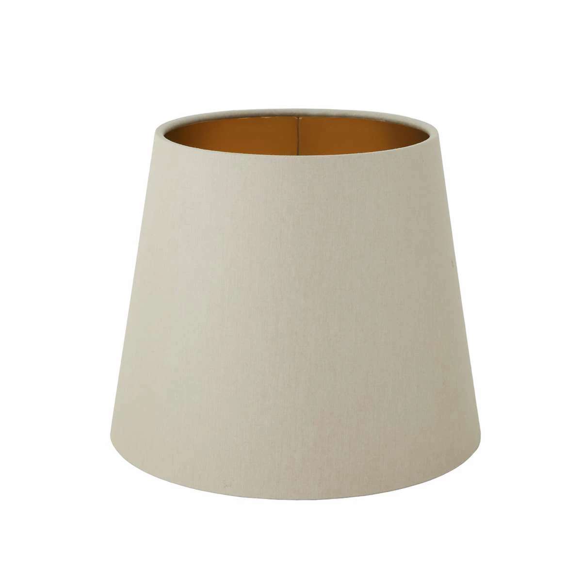 A modification of the classic empire lamp shade, this tall 20cm empire fabric shade has a black or beige cotton exterior and gold lacquer interior. It’s slender and modern and suited for use on modern table lamps and wall lights.