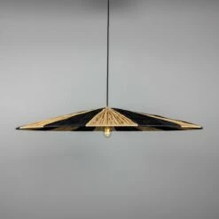 The Vernon is a modern two-tone pendant light made from a sustainable material known as raffia. This contemporary design adds a touch of sophistication and visual interest to any space.