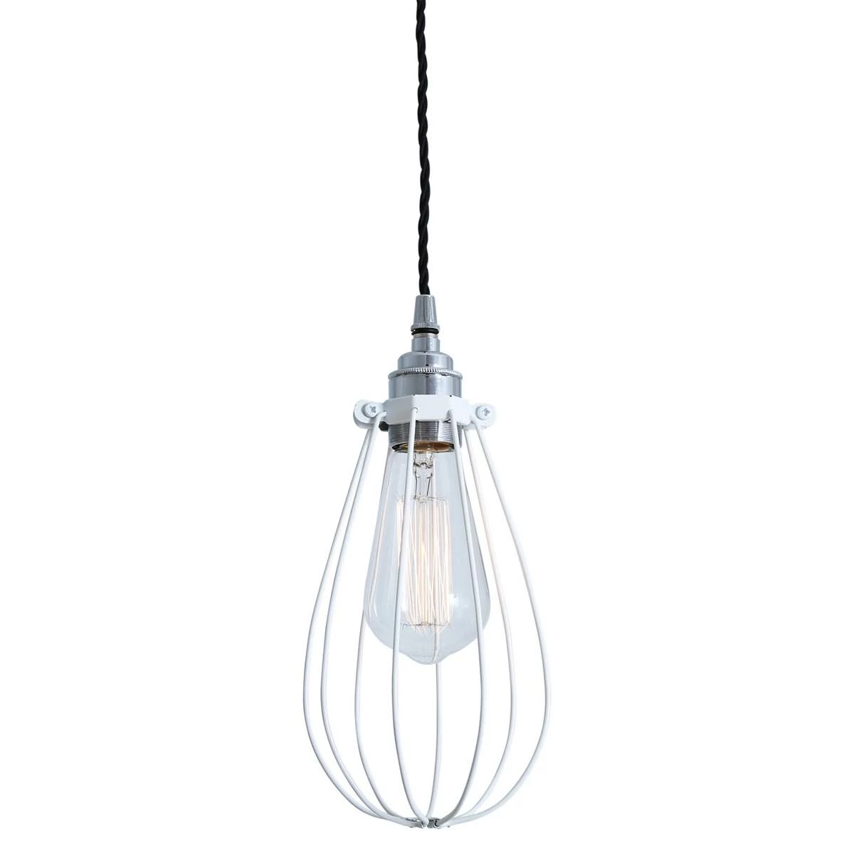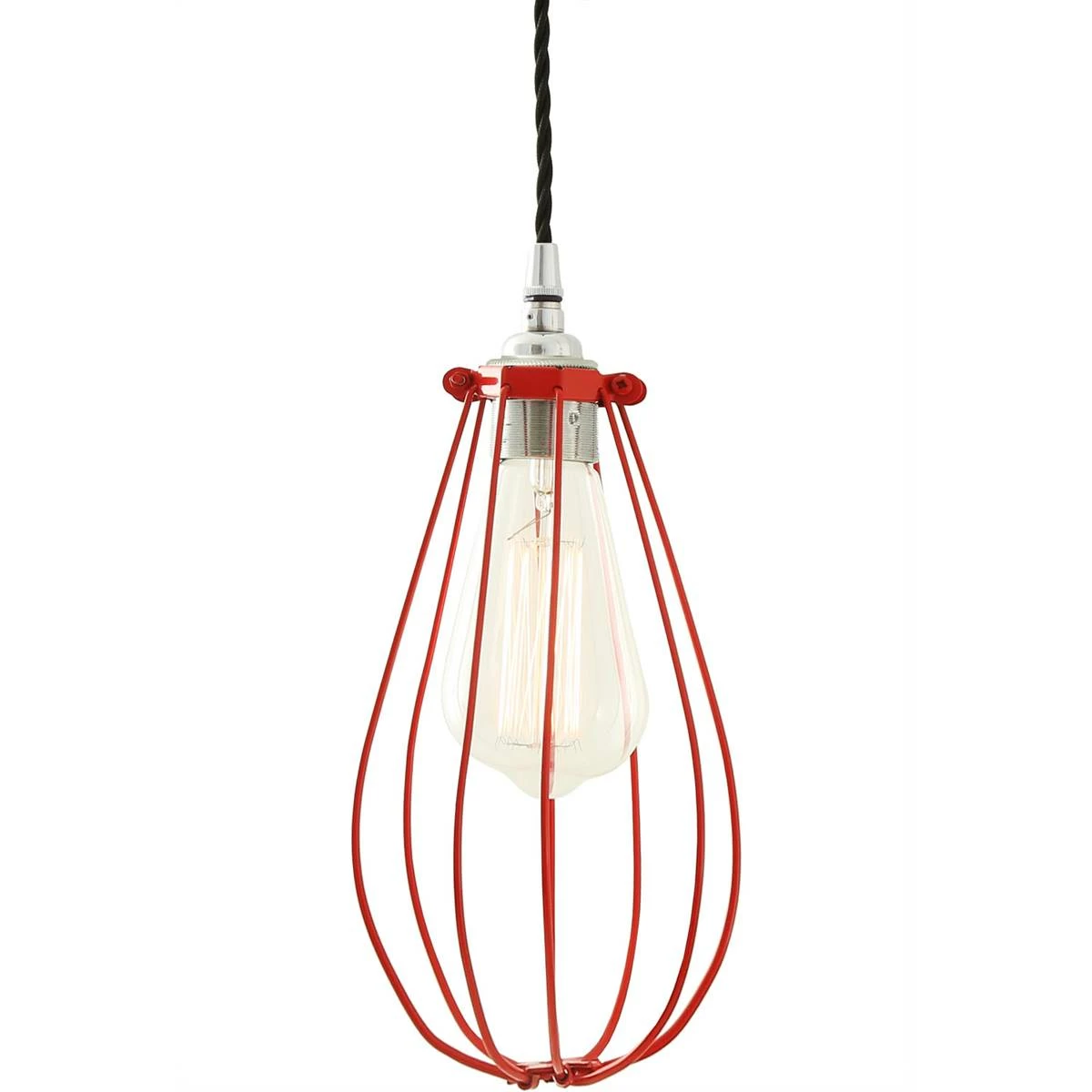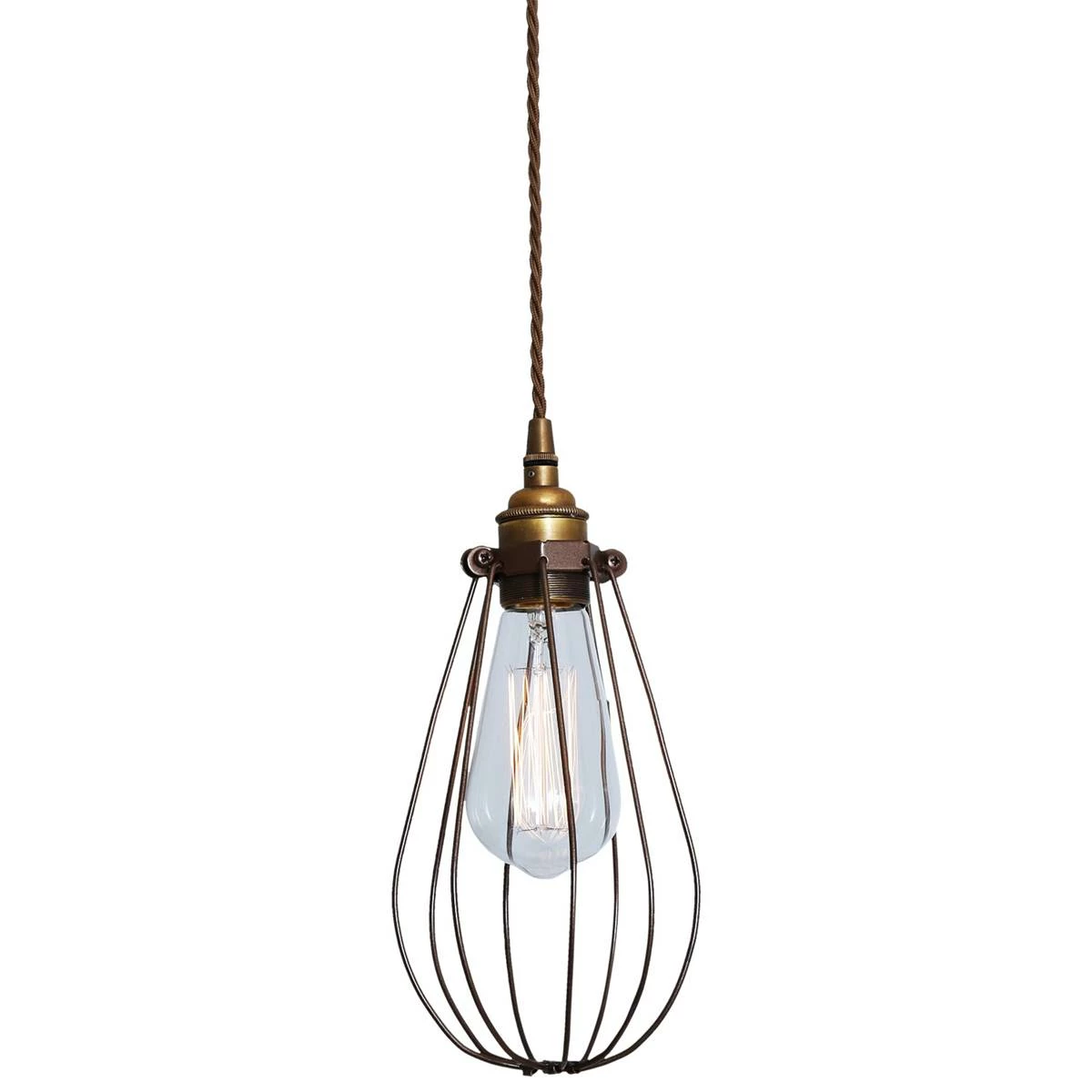Evoking early industrial lighting, the Vox Vintage Cage Pendant Light will add class and character to your industrial or vintage decor. This vintage pendant light is encased by an attractive wire cage shade and is a great addition to any hallway, entranceway, or dining room. Designed to showcase the warmth of Edison-style bulbs, hanging alone or in a cluster these pendant light fixtures will bring a playful sense to the décor. Suitable for minimalist and industrial interiors, this cage pendant lamp looks great when lit with an Edison Teardrop Bulb for a softer and inviting illumination. Bulbs are sold separately.