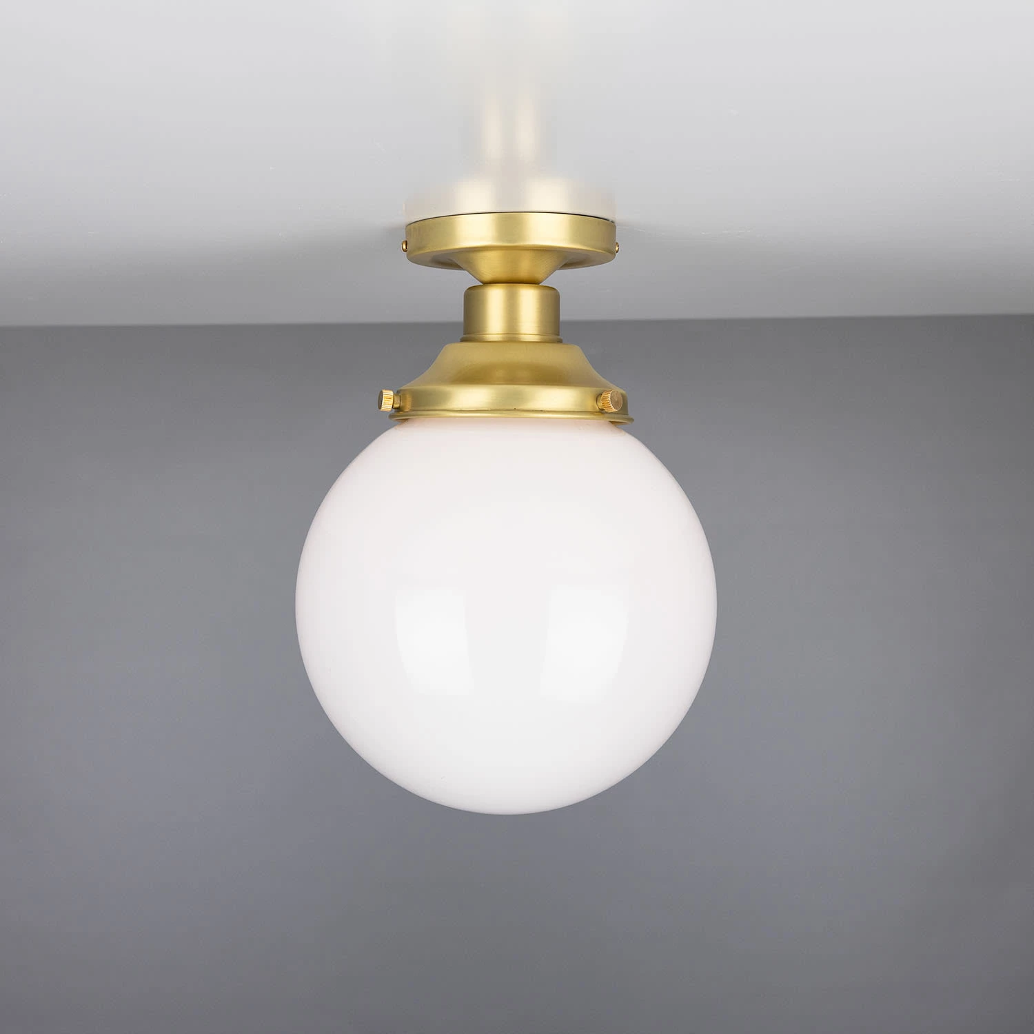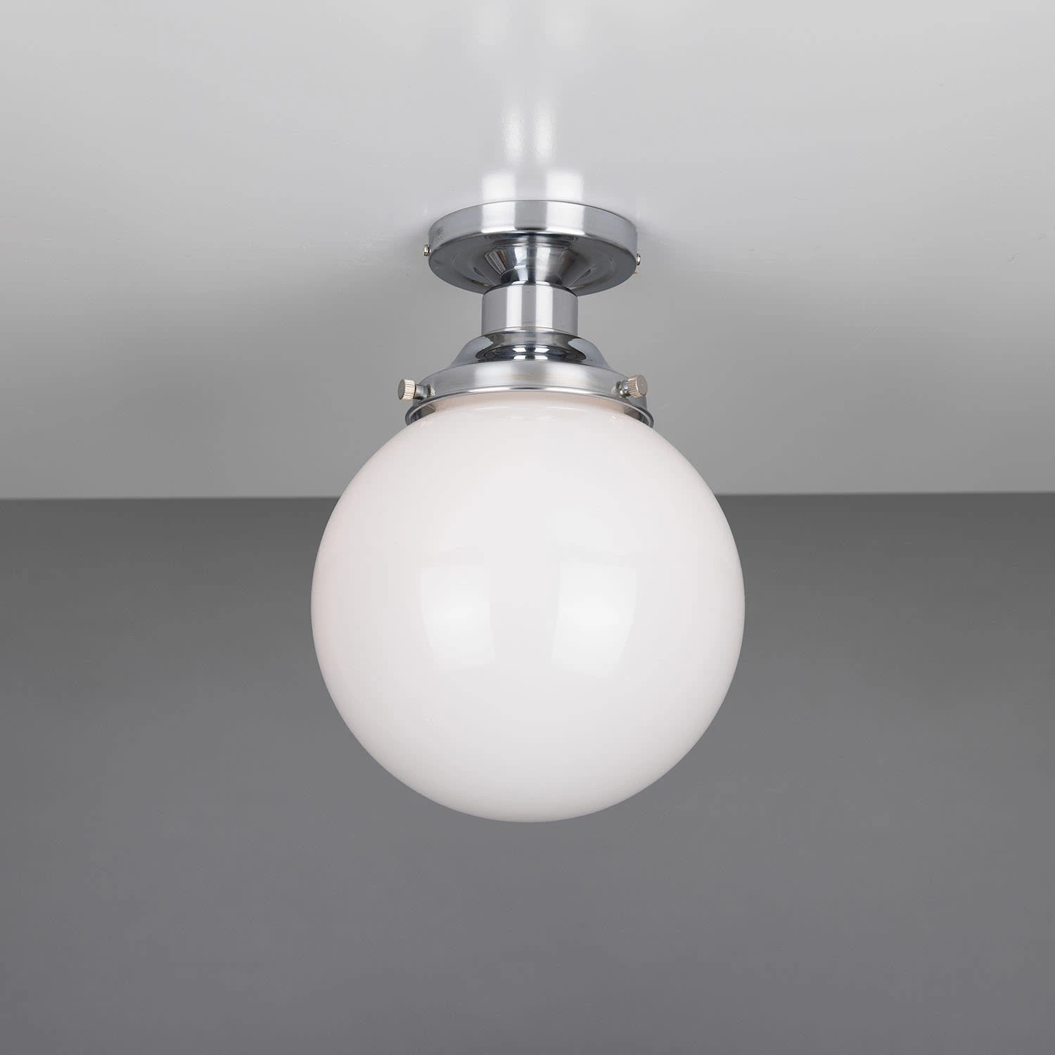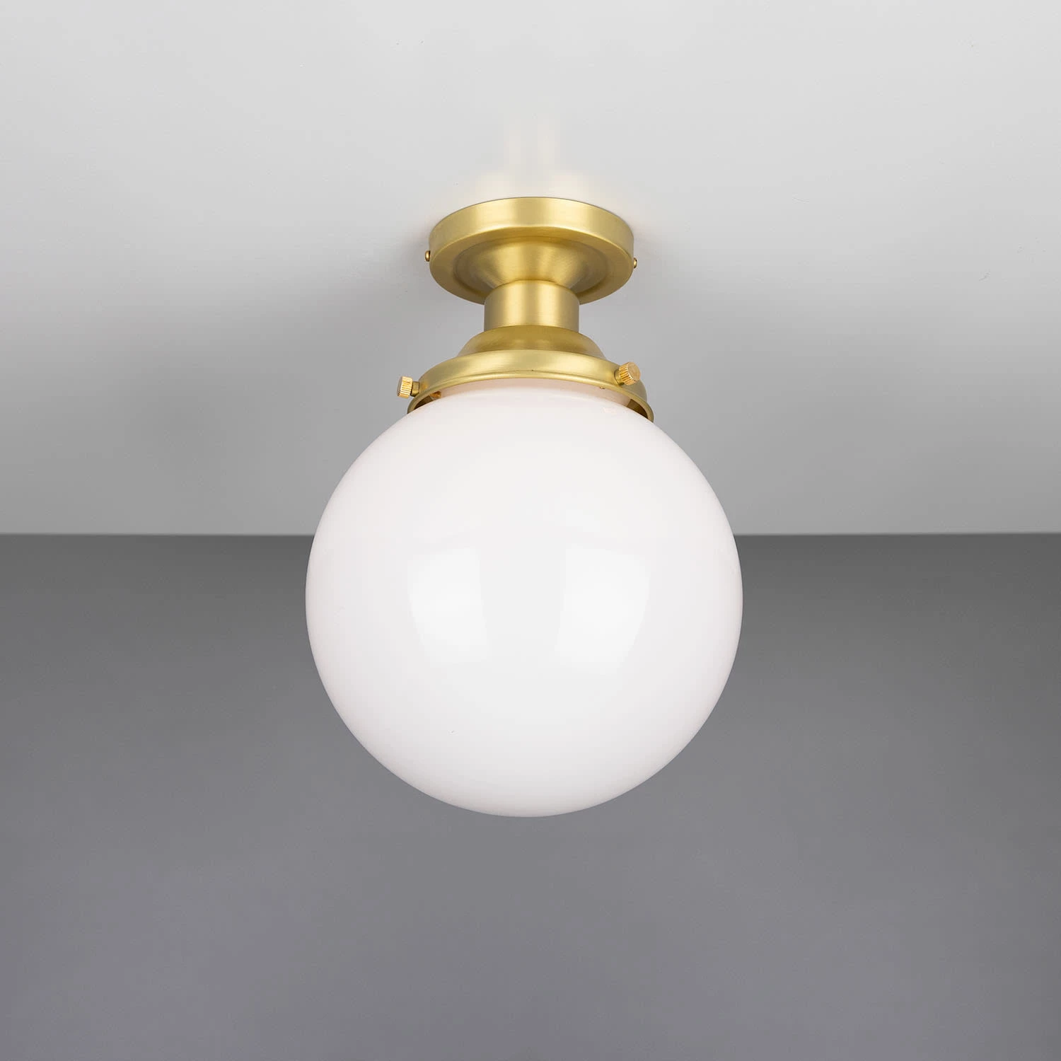 Designed to emanate a soft diffused light, the Yerevan 20cm Globe Ceiling Light Fitting is a great way to add a discreet touch of sophistication to any room. This opal glass semi-flush ceiling light spreads the light evenly, making it an excellent addition to your hallway, entryway or above your dining room table. Perfect for low ceilings, this globe ceiling light features a classic opal glass shade to cast a soft ambient light over a wide area. Suitable for any modern and traditional interiors, this globe semi-flush ceiling light looks great when lit with a warm bulb for a soft lighting. Bulbs are sold separately.