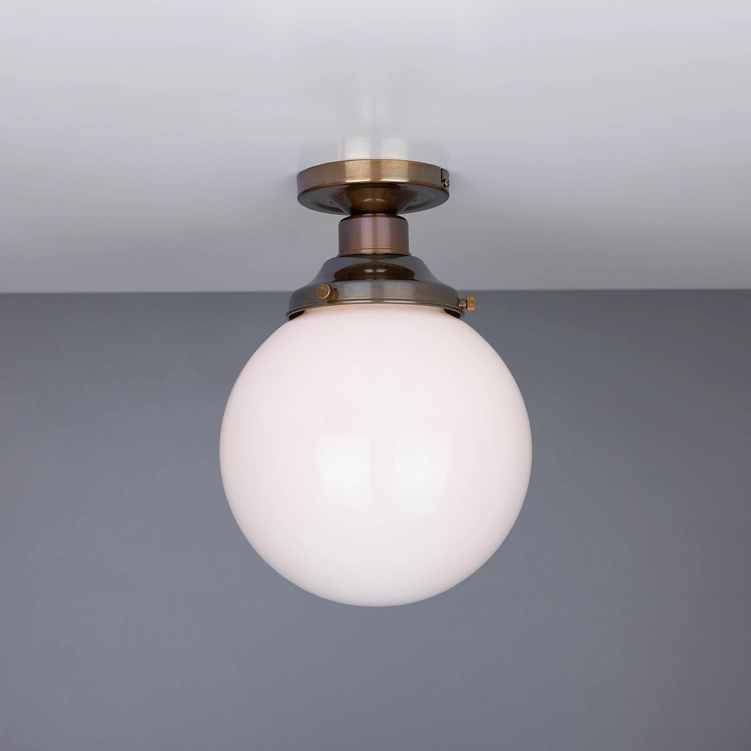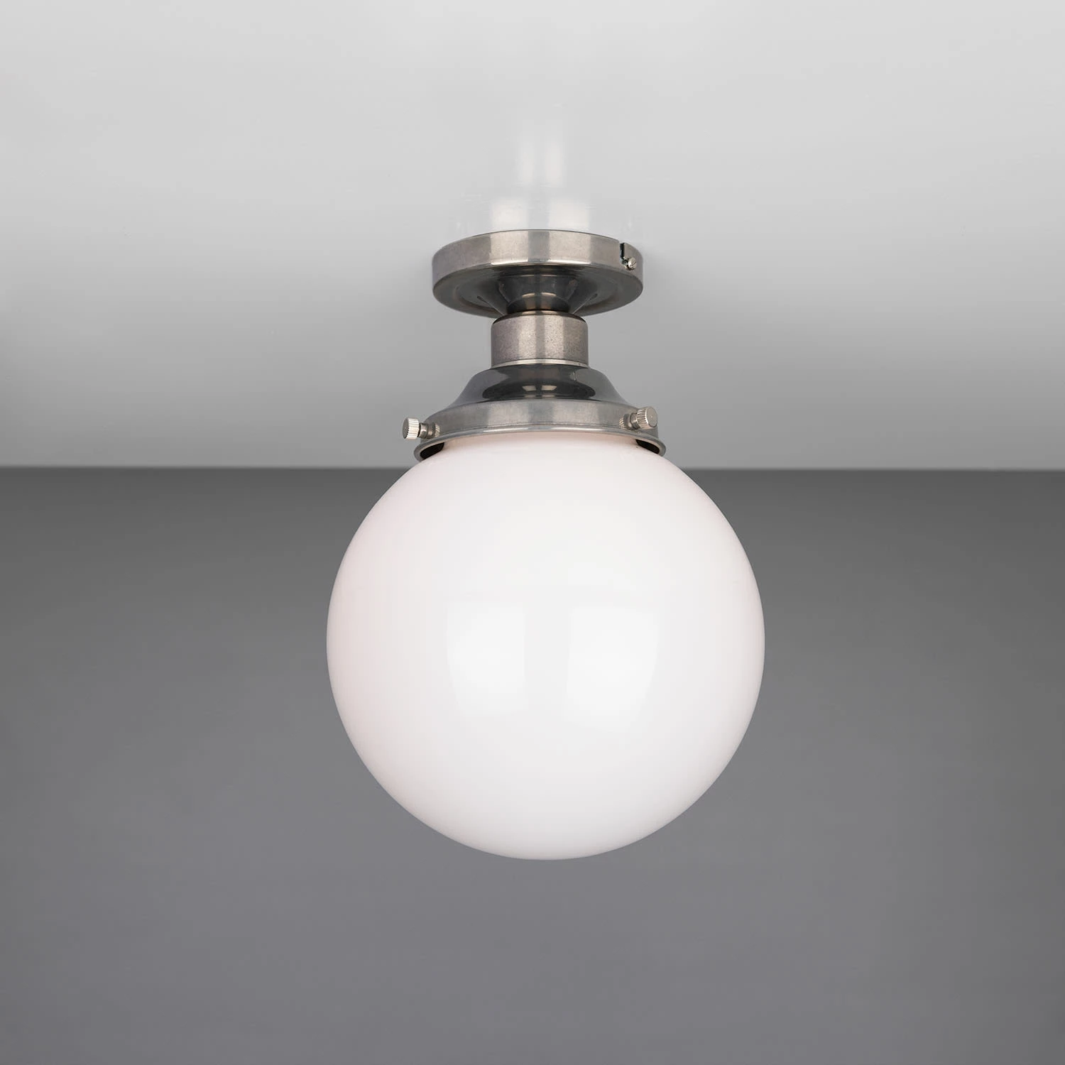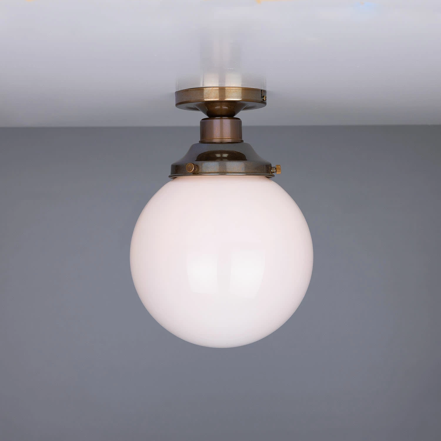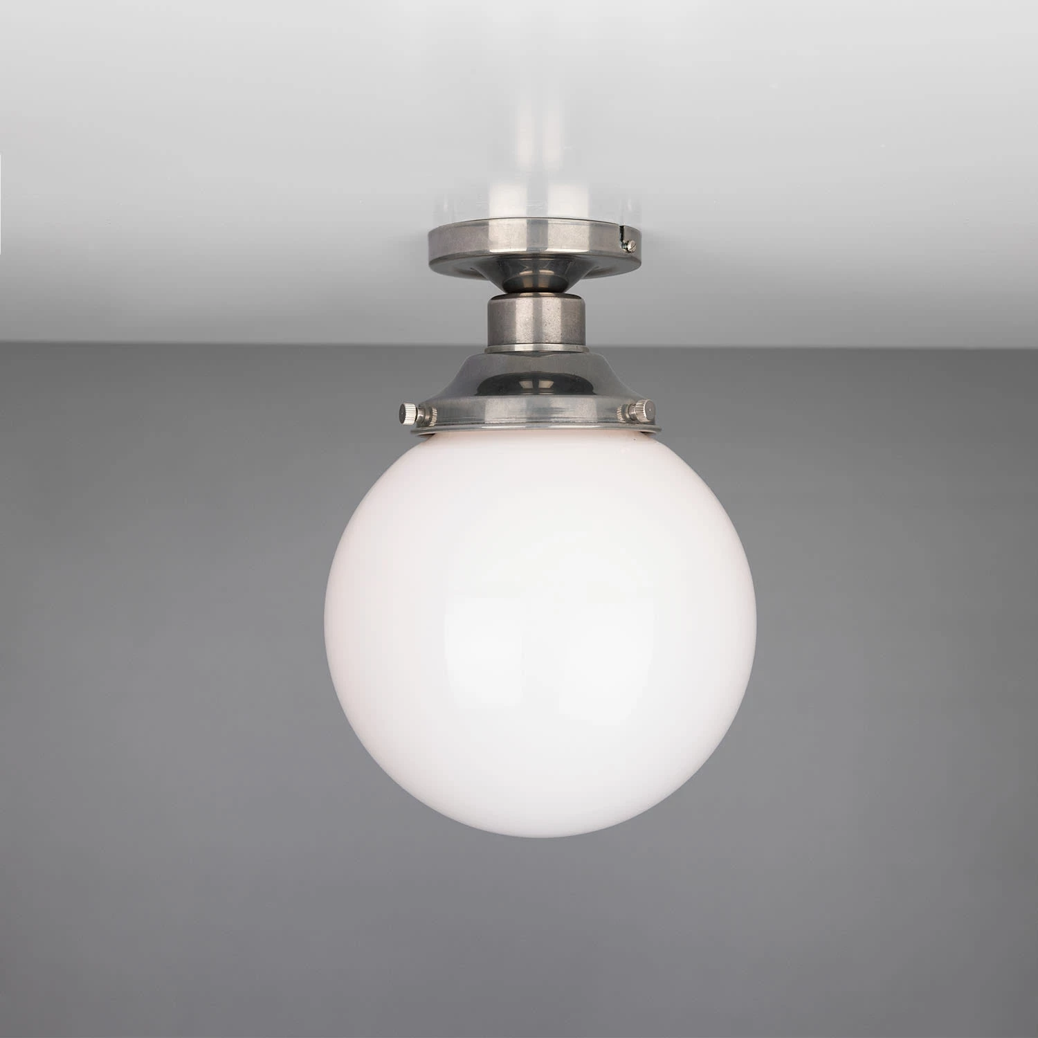 Designed to emanate a soft diffused light, the Yerevan 20cm Globe Ceiling Light Fitting is a great way to add a discreet touch of sophistication to any room. This opal glass semi-flush ceiling light spreads the light evenly, making it an excellent addition to your hallway, entryway or above your dining room table. Perfect for low ceilings, this globe ceiling light features a classic opal glass shade to cast a soft ambient light over a wide area. Suitable for any modern and traditional interiors, this globe semi-flush ceiling light looks great when lit with a warm bulb for a soft lighting. Bulbs are sold separately.